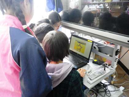 教室に新しいパソコンが入りました。みんな興味津々です。