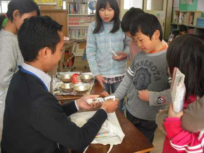 デリック先生と給食を一緒にいただきました。