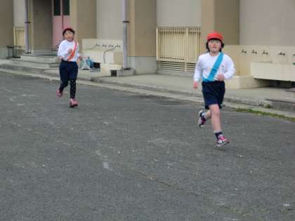 運動場と校庭の周りを1周または,2周を走りました。