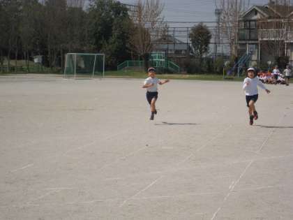 10日(木)は,3年生と一緒に,体育の学習を行いました。始めに,50メートル走をしました。青空のもとで元気に気持ちよく走る姿が見られました。「去年より速くなった。」と話している子もいました。また,50メートル走の後に,ドッチボールもしました。3年生と一緒に楽しく学習することができました。