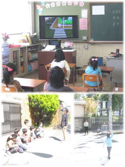 横断歩道では,信号が青になったら,右・左・右を確認して,車やバイクが来ていないか確認してから渡るということがしっかりできていました。これからも安全に気を付けていきましょう。