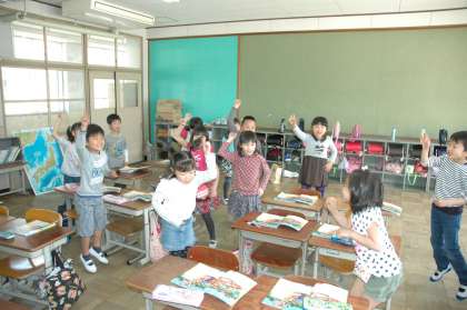 音楽で「ジェットコースター」という歌を学習しました。歌っていると自然と体が動いて踊りだしました。「ビューン」という掛け声も決まり,「もっとやりたい」と言いながら音楽の時間は過ぎました。