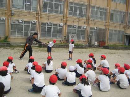 体育の時間には,リレーの学習に取り組んでいます。バトンの渡し方,もらい方などについて練習しました。子どもたちは同じチームの人に声をかけながら,バトンをつなぎ,力いっぱい走る姿が見られました。