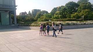 広島平和記念資料館の見学を終え,公園内の慰霊碑めぐりをしています。