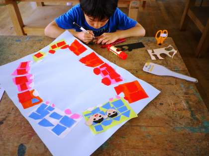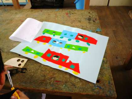 「でんしゃのにって」の続きをしました。電車の乗っている自分をつくりました。楽しい作品に仕上がりました。