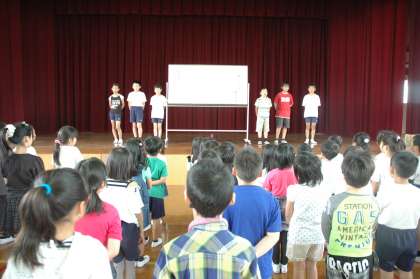 全校児童が集まって,群読集会をしました。大きな声で「あ・い・う・え・お」を群読しました。学年ごとに分かれて読むところも,うまく言えました。次の群読集会が楽しみです。