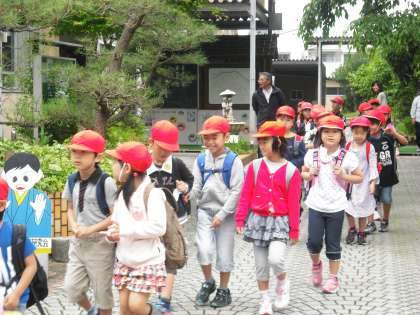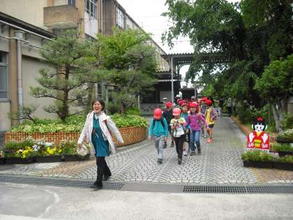 京都市動物園へ向けて,全員揃って笑顔で出発しました。