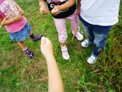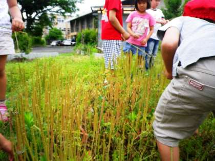 3時間目は,雨が上がったので,ふれあい農園に行きました。オオバコがたくさんあったので,おすもう遊びを楽しみました。そのあと,農園の草引きもがんばりました。