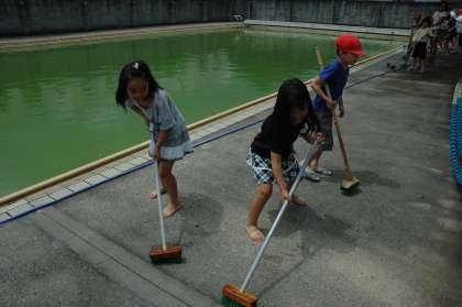 チャレンジ活動の中で,プール掃除をしています。2年生もがんばってます。もうすぐプールでの学習が始まるのが楽しみです。