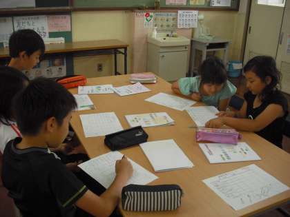 花背山の家での宿泊学習に向けて,それぞれ係活動を頑張っている4・5年生。