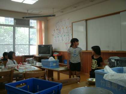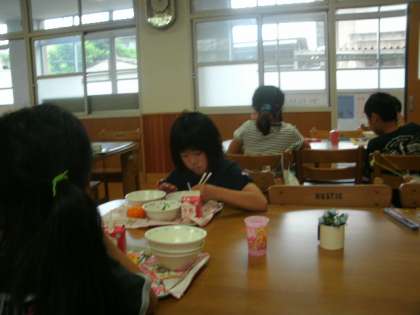 交流給食で1年生とランチルームで給食を食べました。一年生と声を合わせて「いただきます」をしました。おいしい給食を食べながら色々とおしゃべりしたりして楽しい時間を過ごしました。