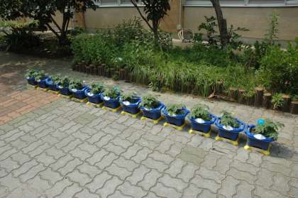 最近,真夏の湯女たくさんの日光を浴びて,ミニトマトが成長しました。葉の数も増え大きくなってきました。まだ実は姿を見せませんが,ますます楽しみになってきました。