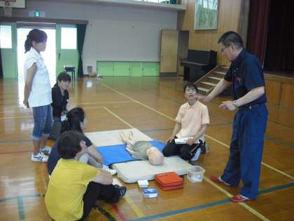 今年も6月16日に,向島南小学校,向島二の丸小学校と合同で,教職員の救急救命研修会を行いました。