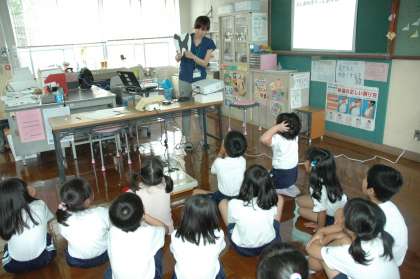 体重測定の前に,保健の先生から,私たちの歯について話を聞きました。虫歯にならないための歯磨きの仕方を教えてもらいました。そして歯磨きの大切さを考えました。今日から歯磨きの時は,歯の汚れを取ることを意識しましょう。