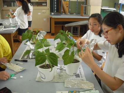 調べる実験の準備をしています。
