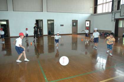 ワンツーの活動で,ドッジボールをしました。柔らかいボールを使ってしました。当たっても痛くないので,キャーキャー言いながらボールに向かっていました。