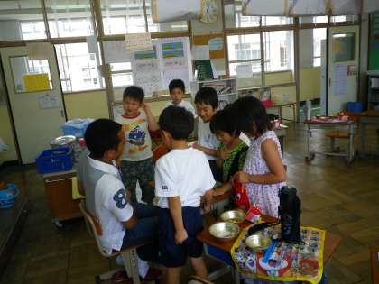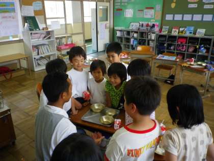 今日は,英語のデリック先生と一緒に給食を食べました。デリック先生のマジックに,みんな大歓声です。