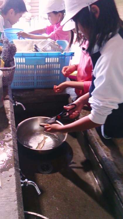 魚つかみで捕った魚をさばきました。