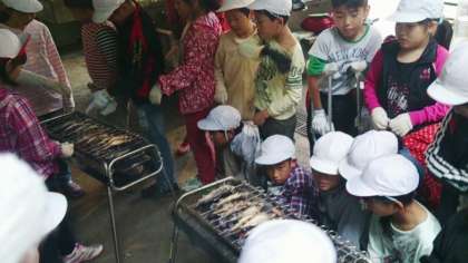 魚をさばいて,炭焼きに…
