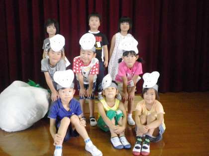 体育館でおおきなかぶの劇をしました。考えたセリフも言えましたね。