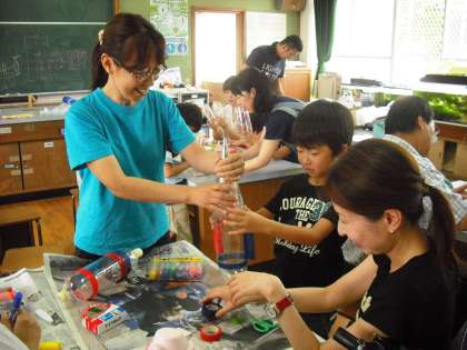 7月12日(土)ポプラサークル主催のペットボトル教室が,台風一過のさわやかな晴天のもと,開かれました。