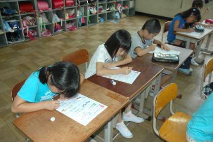 プールに向かおうとした時,雨が降ってきました。残念ですが,プールでの学習は中止しました。仕方なく,教室で学習を進めましたが,空を見ながら諦めきれない様子でした。しかし,気持ちを切り替えしっかり学習しました。