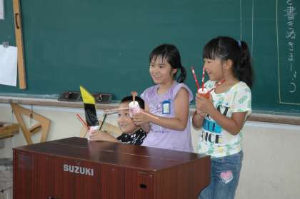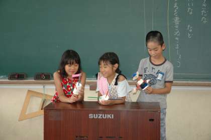 遊び係の提案で,人形劇をしました。図工の時間に作った「パタパタストロー」を使いました。4つのグループに分かれて短い話を考えて発表しました。どのグループも,とても良くできていました。