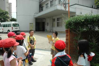 校区探検で,それぞれお気に入りの場所を見つけて紹介しました。野の百合保育園は,夏になると,突然プールができることや,新しくできたジャングルジムがお気に入りのところです。