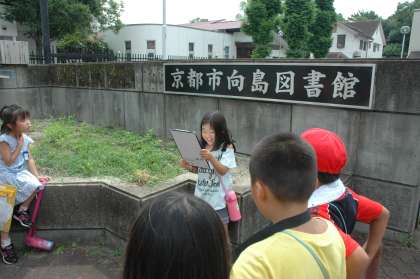 校区探検で,それぞれお気に入りの場所を見つけて紹介しました。向島図書館のお気に入りは,読み終えてない本は,延長して借りられること,マンガがたくさんあること,夏はエアコンが入っていて涼しいこと,などです。