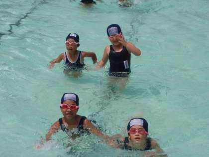 夏休み中ですが,たくさんの2年生がプールに集まりました。気温の一番高くなる昼過ぎに元気に登校して,元気に泳ぎました。暑さに負けることなく,大いに楽しみました。
