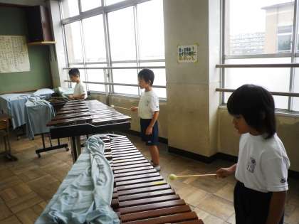 今日の音楽は,どれみのキャンディーに合わせて木琴を演奏しました。みんな上手に演奏できていました。