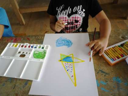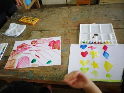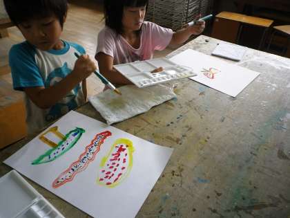 初めてえのぐセットを使いました。用具の使い方を学習した後,好きな絵を描きました。