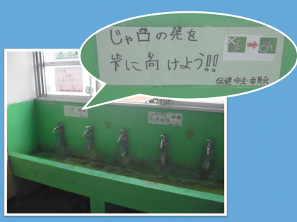 そこで,保健安全委員会で,手洗い場に貼るポスターを作りました。