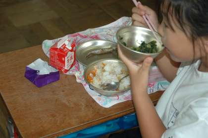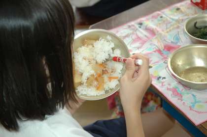 給食は,新献立の「冬瓜のあんかけご飯」でした。ご飯の上に乗せて食べました。おいしい,おいしいという声をたくさん聞きました。