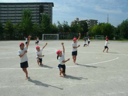 運動会に向けて,3年生と一緒に学習しています。団体演技「ちゃーびらさい」では,曲に合わせて,軽やかに踊れるようになってきました。運動場での練習では,隊形移動などがスムーズにできるようになりました。
