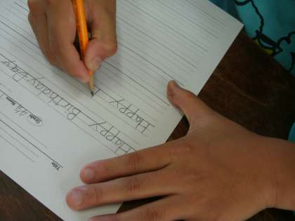 今週,英語活動の学習がありました。今回は,友達や家族に送るカードを作りました。カードを作るにあたって,簡単な英語を書く学習もしました。大文字や小文字の違いに気を付けながら,カードを作っていきました。