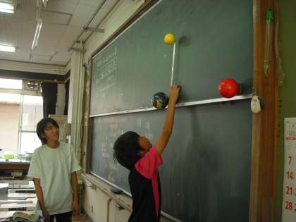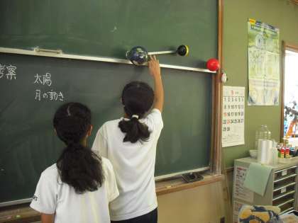 模型を使って,月と太陽の位置関係の学習をしました。