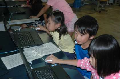 コンピュータ室で操作の仕方を練習しました。初めてのコンピュータ室での学習なのでワクワクしていました。簡単のマウスの操作をゲームをしながら覚えました。