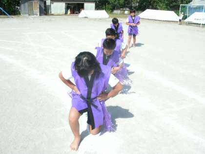 運動会前日の最後の練習(ちゃーびらさい)をしました。入場の隊形に並ぶ時から,子ども達の真剣な様子が伝わってきました。これまで練習してきた成果を明日,発揮してくれることを楽しみにしています。