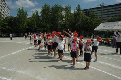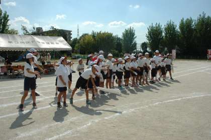 応援合戦では,赤組も白組も大きな声を出していました。中でも2年生が大きな声でした。応援団の人に合わせて手をたたいて,手を振って,そして大声で優勝できるように応援しました。