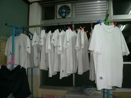 洗濯のすすぎをして,きちんとたたんで洗濯機で脱水をしました。それをパタパタとしわのばしをして干しました。洗剤のにおいとともに,部屋でゆれています。