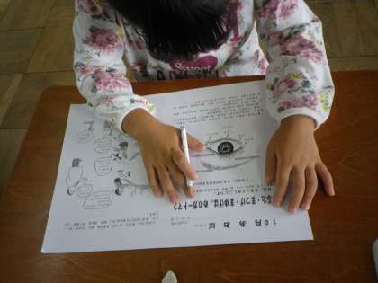 今日は,保健の学習をしました。まぶた・まゆ毛・まつ毛の働きについて考えました。目の体操もしました。