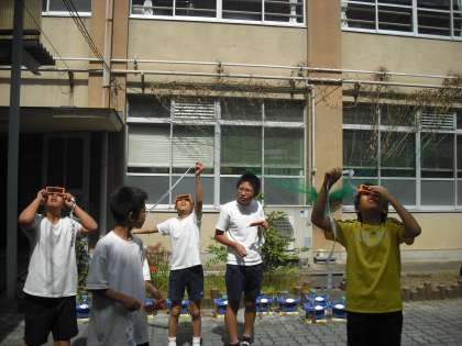 紙テープを使って,太陽と月の位置関係を観察しました。