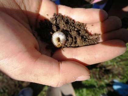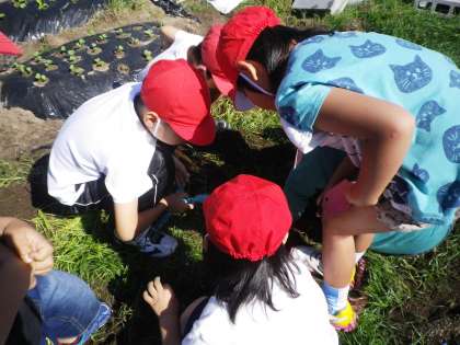 ふれあい農園に行きました。草抜きをしていると,たくさんの幼虫を見つけました。教室で育てることにしました。