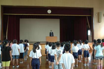 前期の終業式がありました。ちょうど一年の折り返し点になります。いつもの朝会とは少し違った雰囲気の中で式は進みました。2年生も全員気を引き締めて校長先生の話を聞きました。
