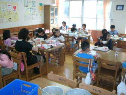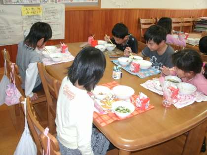 先週の金曜日,交流給食がありました。一年生と楽しくお話しながら,給食を食べました。