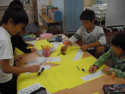 保健安全委員会では,フッ化物洗口の放送の練習と,11月に行う取組の準備をしました。