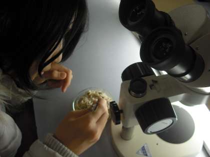 理科では教頭先生から「顕微鏡を使って、(ちりめんじゃこの)生物観察」