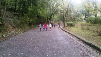 6つのポイントで先生から問題を出してもらい,なかよしグループで協力して解きながら宝ヶ池を一周します。