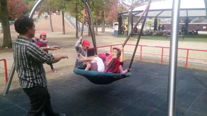 お弁当を食べたあと,こどもの楽園で遊んでいます。
